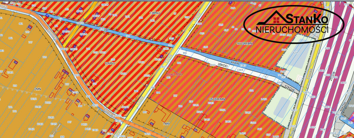 Tren objęty MPZP, symbolika planu 12 MNU, 13MNU.